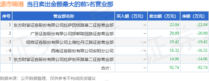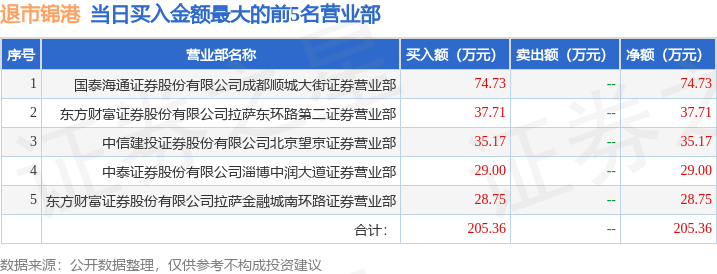 证券之星消息,沪深交易所2025年7月10日公布的交易公开信息显示配资炒股股市,退市锦港(600190)因退市整理的证券登上龙虎榜。此次是近5个交易日内第5次上榜。